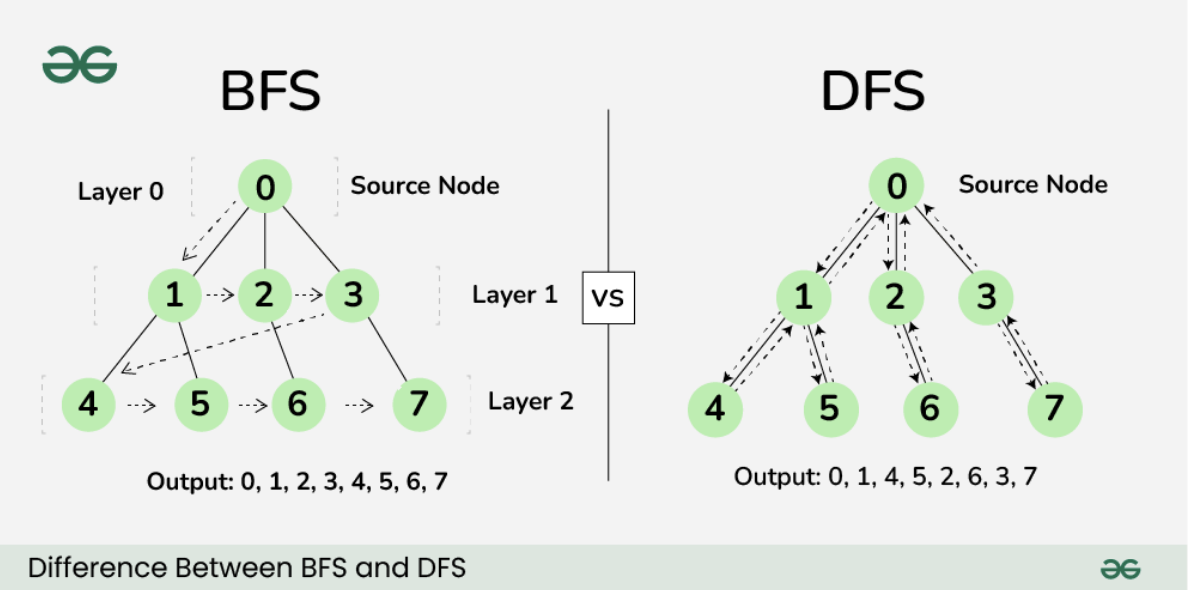 - 그래프에서 한 노드에서 시작해서 모든 노드까지 방문하는 알고리즘